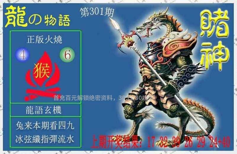 | 298期:解澳彩签牌 精准提供生肖:龙羊猴猪 精准波色+大小:绿红波+小 |